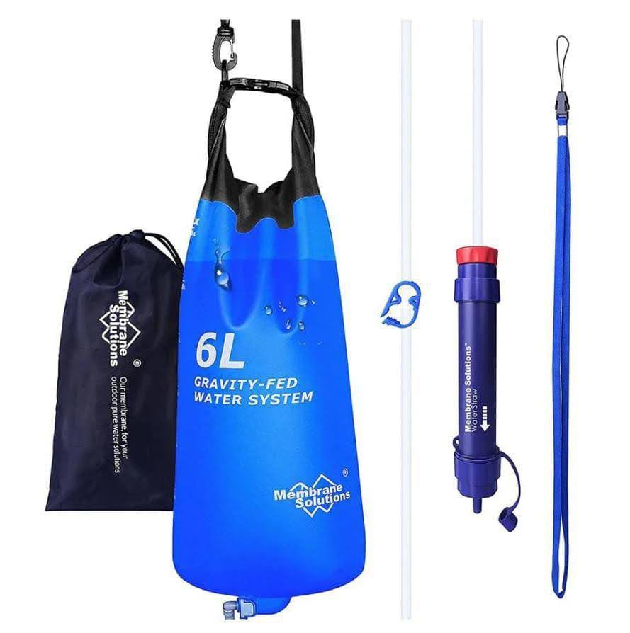 If you’re hiking with friends or planning to set up camp for a while, a gravity filter is the easiest way to produce larger quantities of clean water without any pumping. Systems like the Membrane Solutions gravity water filter can handle up to 1.59 gallons (6 liters) in one go—perfect for cooking, refilling multiple bottles, or topping up hydration packs.